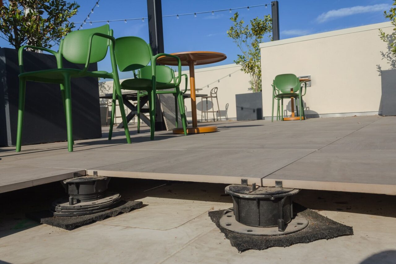The Bison Versadjust (V-Series) Adjustable Pedestal line is a system for elevating and leveling floor tiles on a variety of surfaces. Pair with compatible ORCO porcelain tiles, natural stone tiles, or large pavers to implement effective raised decks and rooftop plazas. Precise spacer tabs allow for deck drainage and uniform paver spacing, while the screw-to-adjust height settings assure a perfectly level deck.